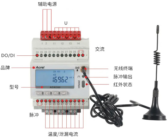 ADW300無線計(jì)量?jī)x表主要用于計(jì)量低壓網(wǎng)絡(luò)的三相有功電能,具有RS485通訊和470MHz無線通訊功能,方便用戶進(jìn)行用電監(jiān)測(cè)、集抄和管理。可靈活安裝于配電箱內(nèi),實(shí)現(xiàn)對(duì)不同區(qū)域和不同負(fù)荷的分項(xiàng)電能計(jì)量,統(tǒng)計(jì)和分析。
