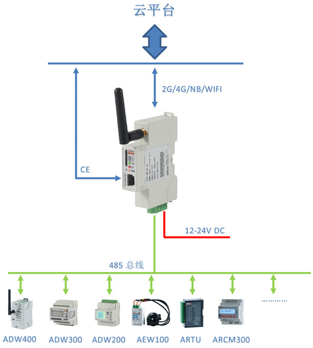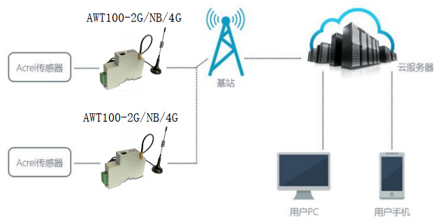 注:①AWT100-2G/NB/4G無線通信終端能通過安科瑞平臺(tái)協(xié)議與安科瑞服務(wù)器通訊。