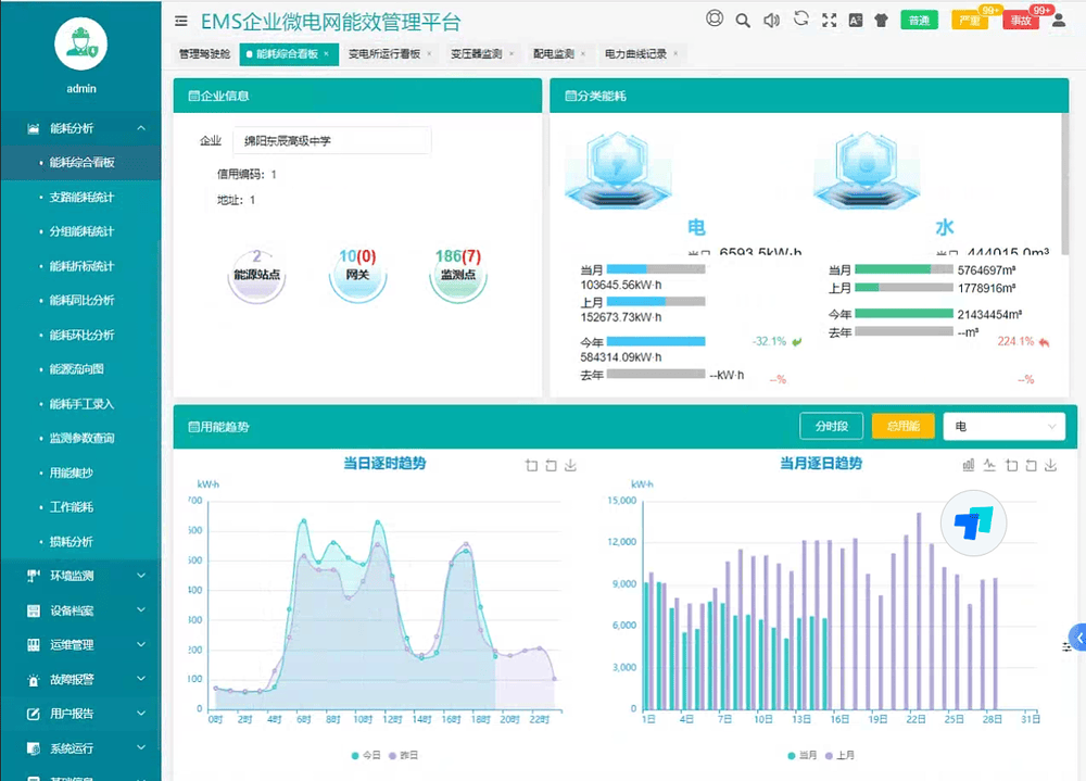 該項(xiàng)目有1個(gè)高壓配電房和1個(gè)箱變配電房及10個(gè)位置的水表。安科瑞為該項(xiàng)目提供Acrel EMS企業(yè)微電網(wǎng)能效管理平臺(tái),包括:Acrel EMS軟件、智能儀表AMC72L(167只),微機(jī)保護(hù)AM5SE(9只),智能操顯ASD320(10只)。