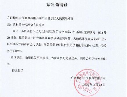 抗擊新冠肺炎,是一場沒有硝煙的戰爭,走在一線的醫護人員,承受著不為人知的壓力,與此同時,2月12日安科瑞接到廣西南寧醫院緊急邀請函,希望在2月20日前,完成供貨任務。