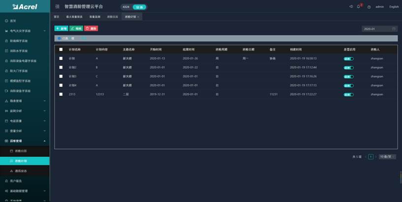 點(diǎn)擊菜單中的巡檢計(jì)劃,進(jìn)入對(duì)應(yīng)的頁面,對(duì)相關(guān)的巡檢計(jì)劃進(jìn)行查看工單,切換日期來查詢所要預(yù)覽的數(shù)據(jù),支持對(duì)巡檢計(jì)劃的新增,修改和刪除。