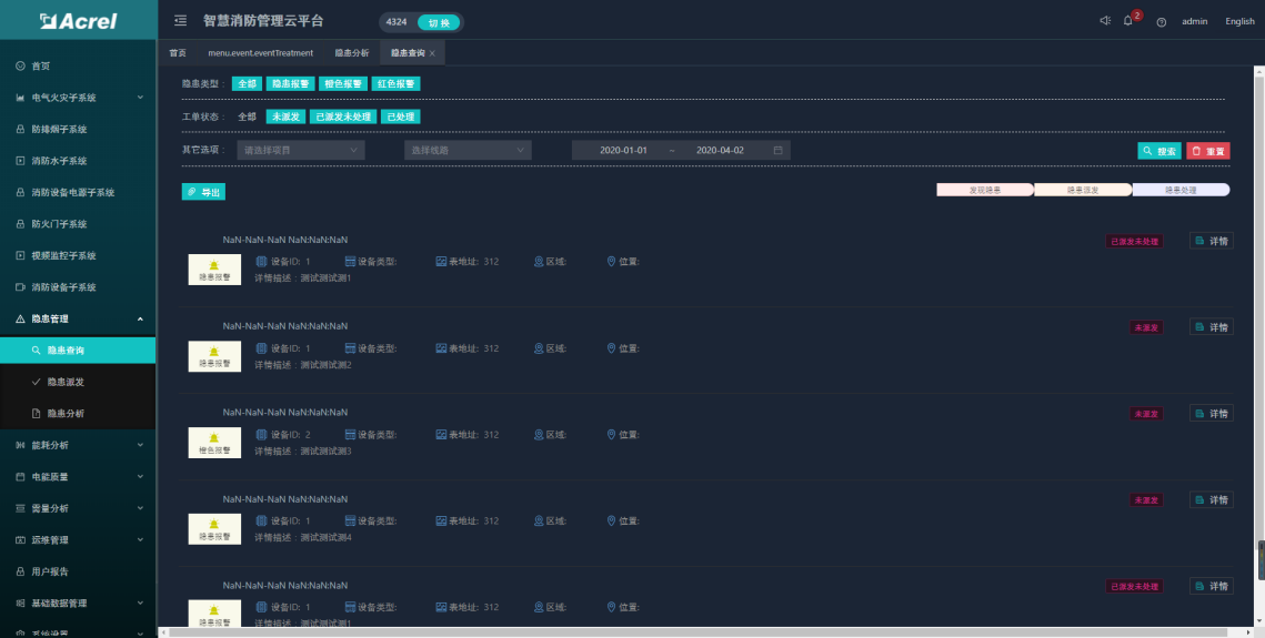 在對(duì)于系統(tǒng)產(chǎn)生的隱患記錄,相關(guān)人員能夠?qū)ο鄳?yīng)記錄對(duì)應(yīng)的設(shè)備進(jìn)行操作。