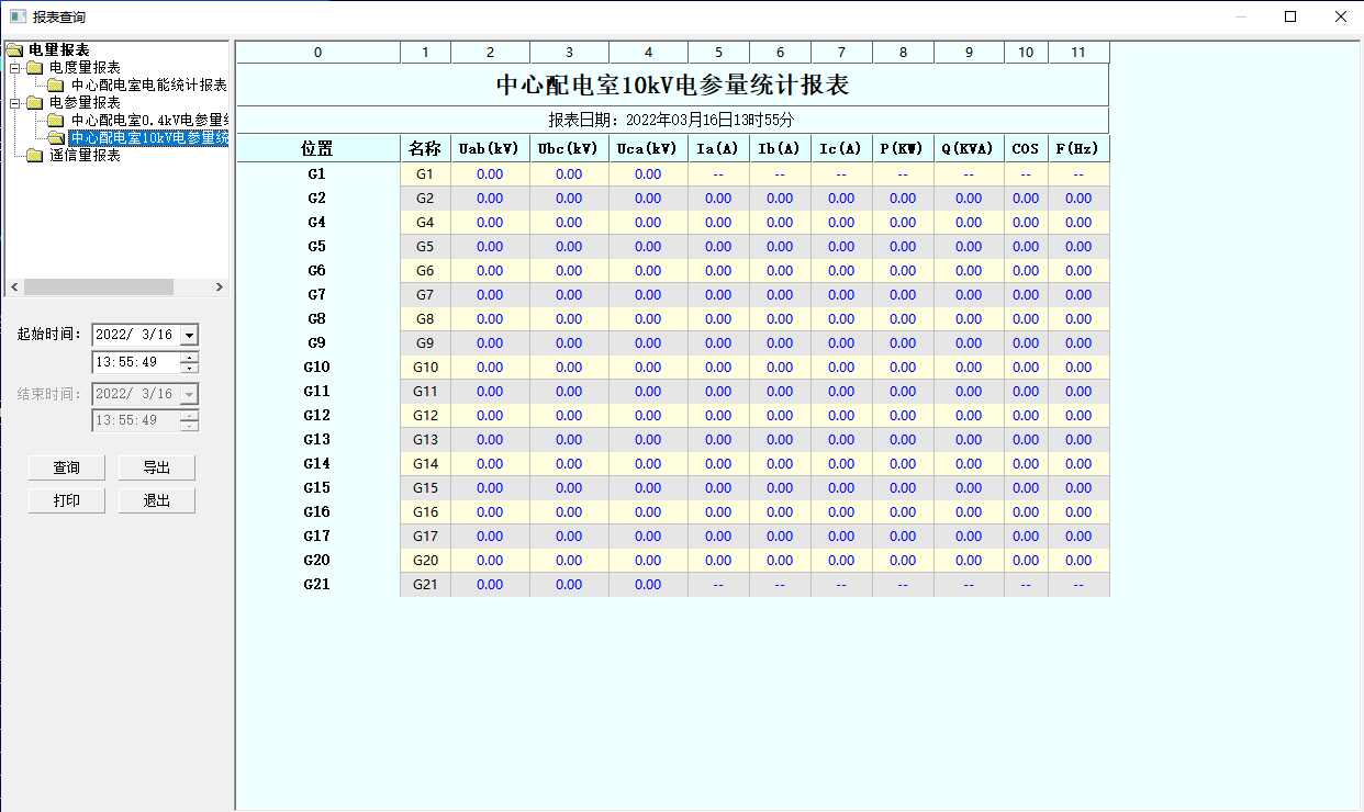 查詢各回路或設(shè)備指定時間的運行參數(shù),報表中顯示電參量信息應(yīng)包括:各相電流、三相電壓、總功率因數(shù)、總有功功率、總無功功率、正向有功電能等.